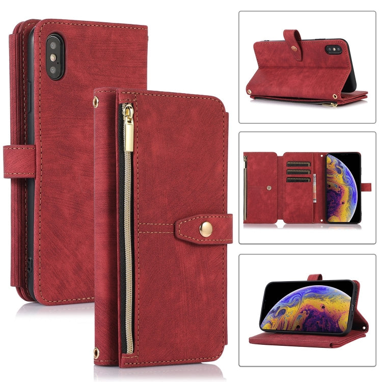 Funda de Cuero Dream 9-Card Wallet Zipper Bag para iPhone X / Xs (Rojo)