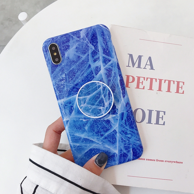 Estuche TPU Anticaída para iPhone X Xs con Soporte Plegable Mármol Brillante