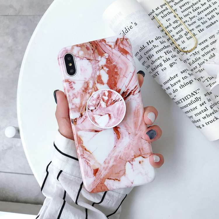 Estuche TPU anticaída para iPhone X / Xs con soporte plegable mármol brillante (Z31)