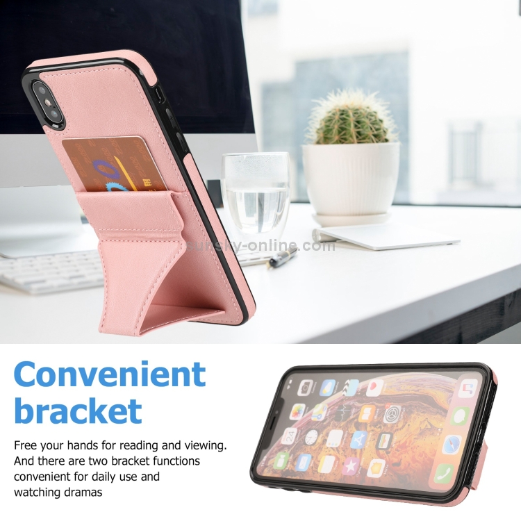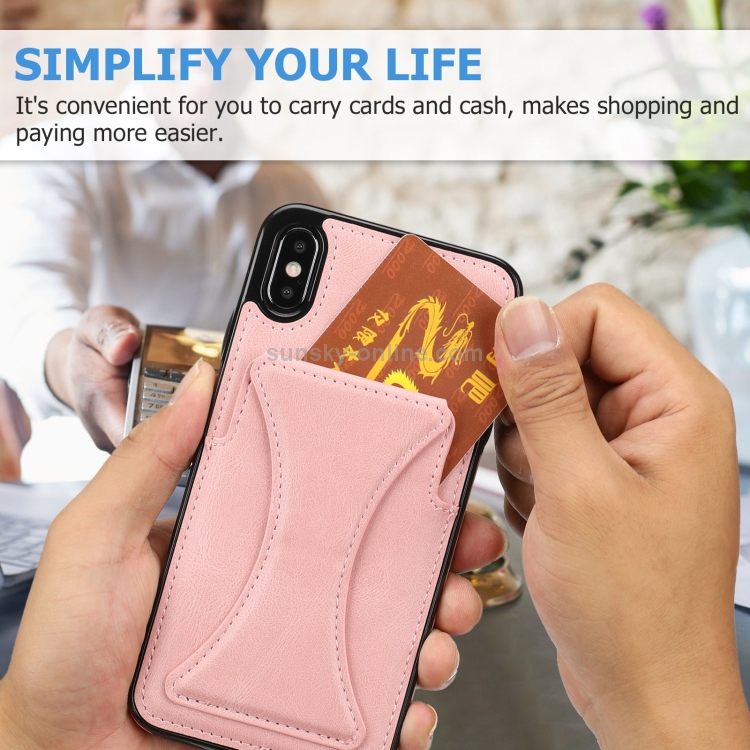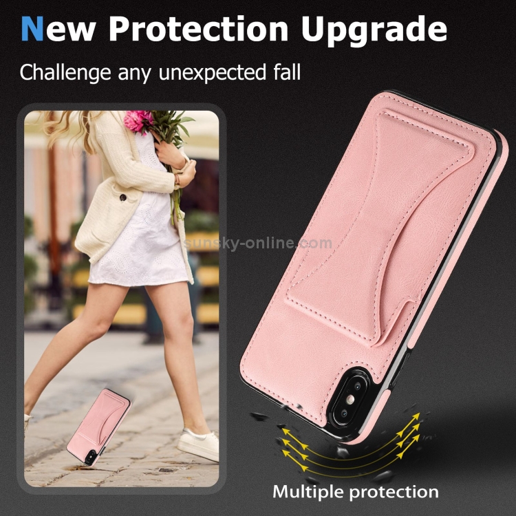 Estuche Protector para iPhone X Xs Ultrafino Prueba de Golpes Soporte Función Magnética Metal (Oro Rosa)