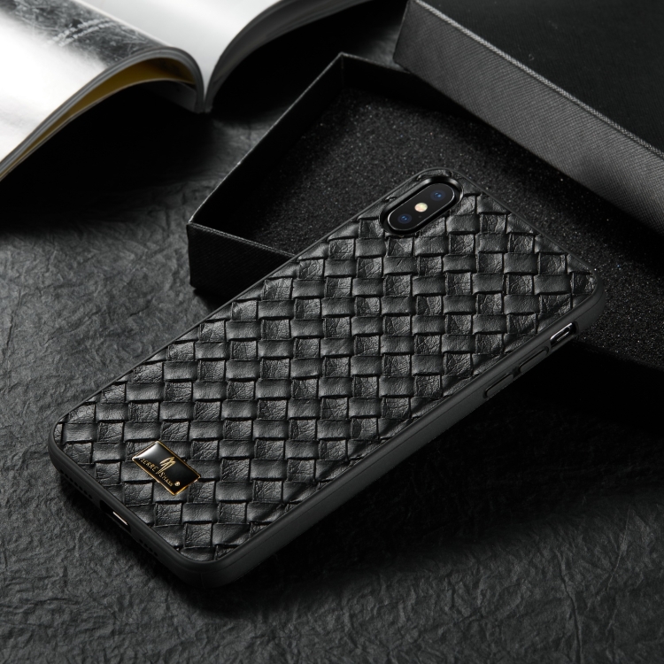 Funda para iPhone X Xs Fierre Shann Leather Texture Back Cover Case (Tejido Negro)