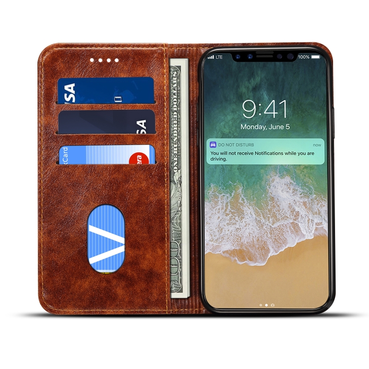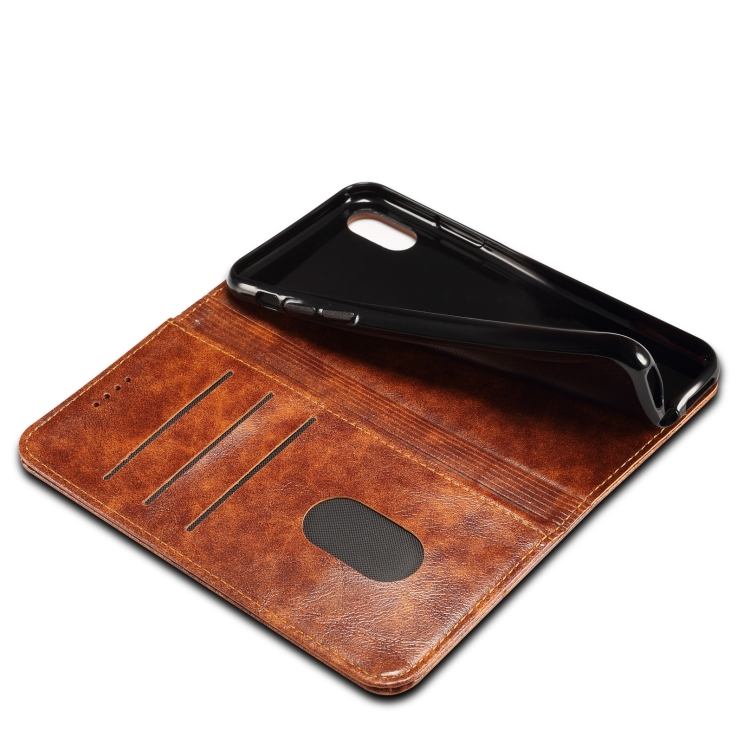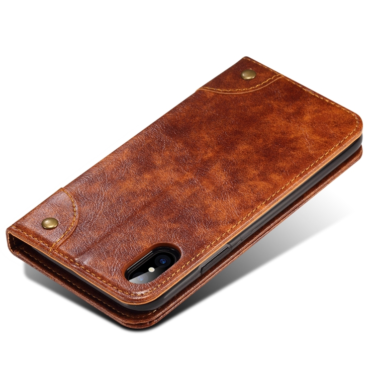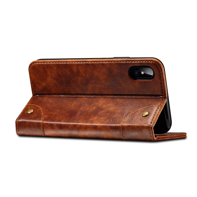 Funda de Cuero para iPhone X Xs con Tapa Horizontal Soporte Ranuras Tarjetas Billetera (Marrón Claro)