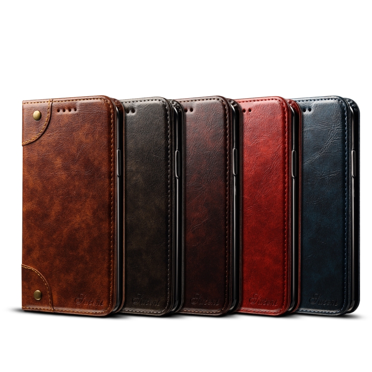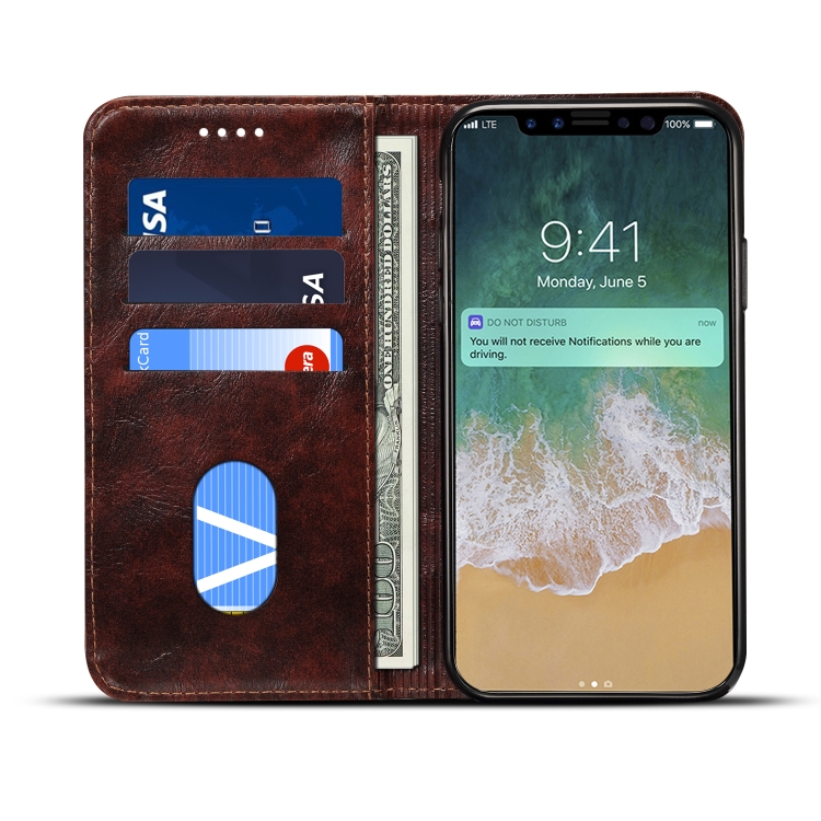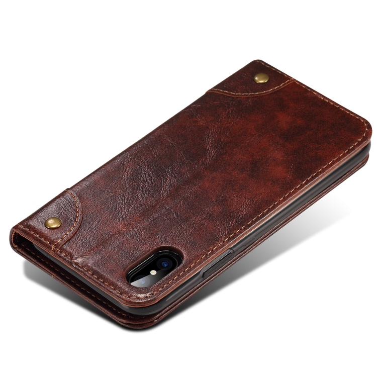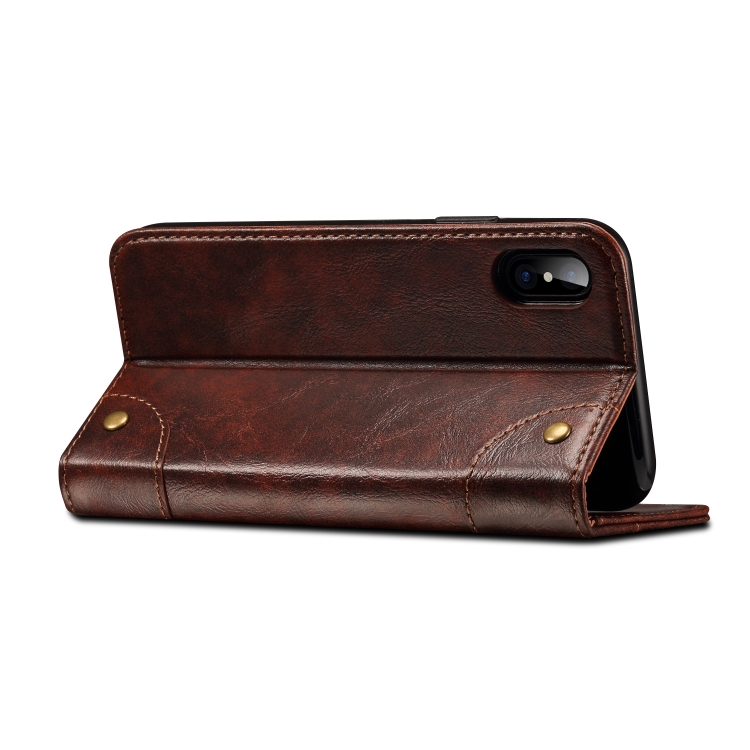 Funda de Cuero para iPhone X Xs con Tapa Horizontal, Soporte y Ranuras para Tarjetas y Billetera (Marrón Oscuro)