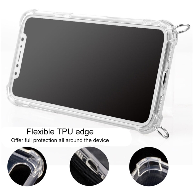 Funda de Teléfono Móvil TPU para iPhone X Xs Anticaída Cuatro Esquinas con Cordón (Gris Blanco)