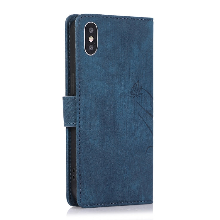 Funda para Teléfono iPhone X / Xs Cuero con Relieve Mariposa Orquídea (Azul)