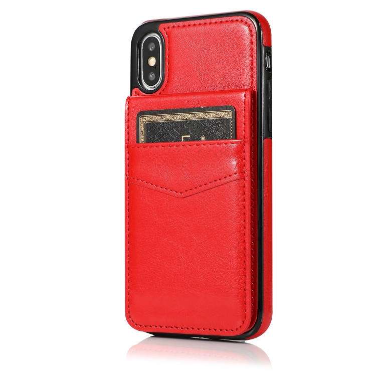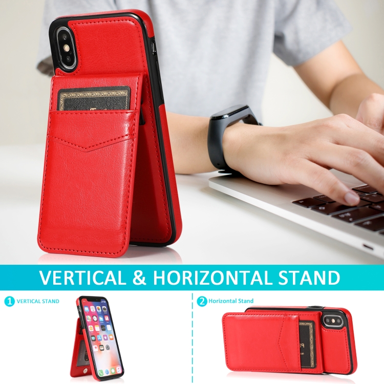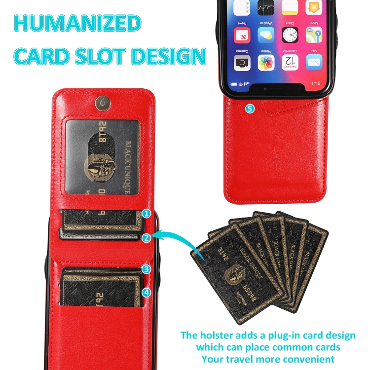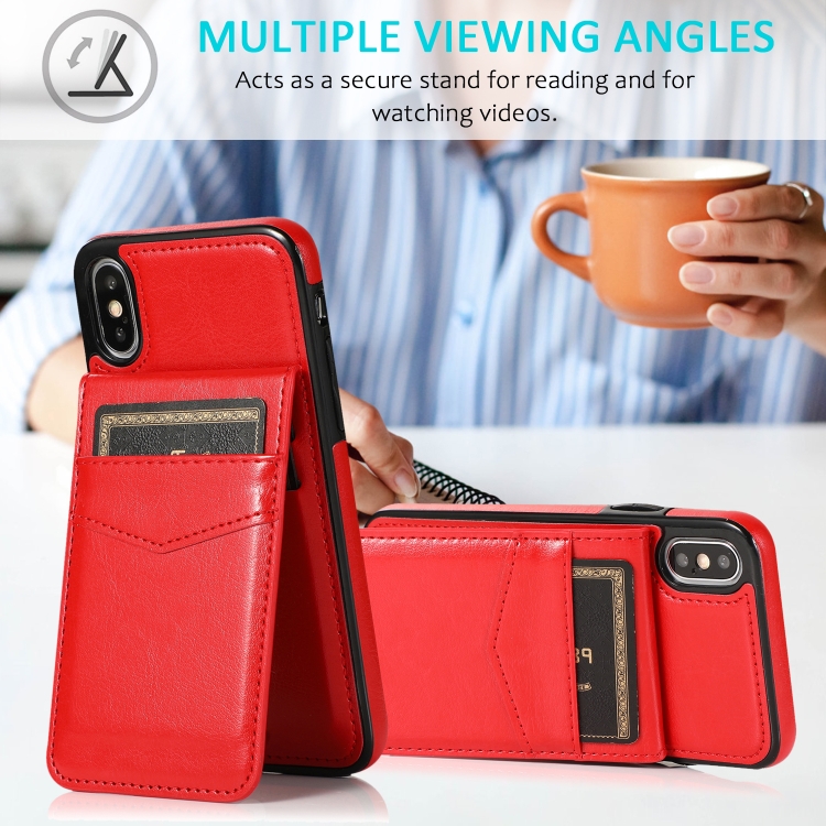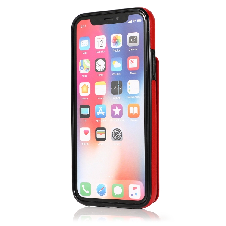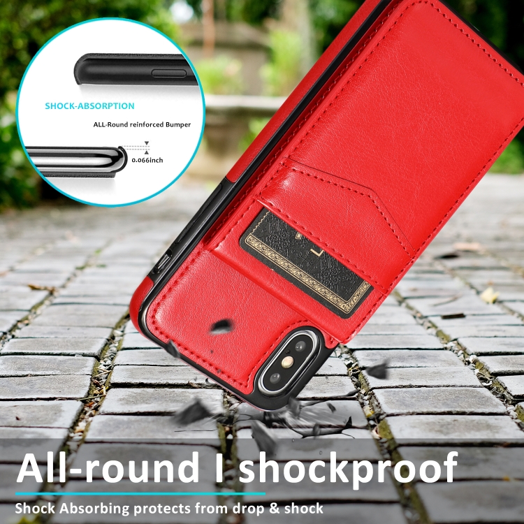 Funda Protectora para iPhone X Xs PC y TPU con Soporte y Ranuras para Tarjetas (Rojo)
