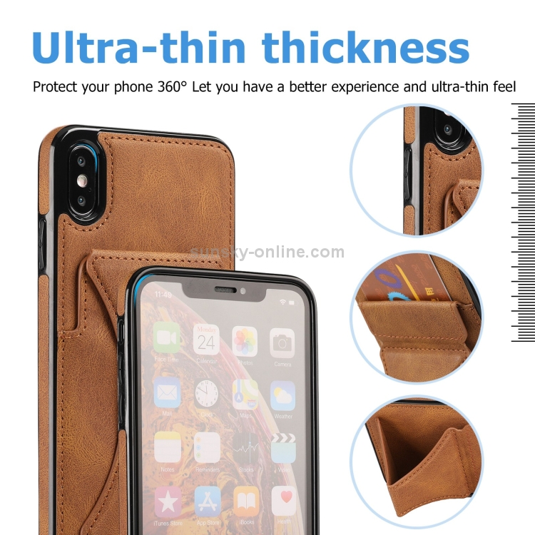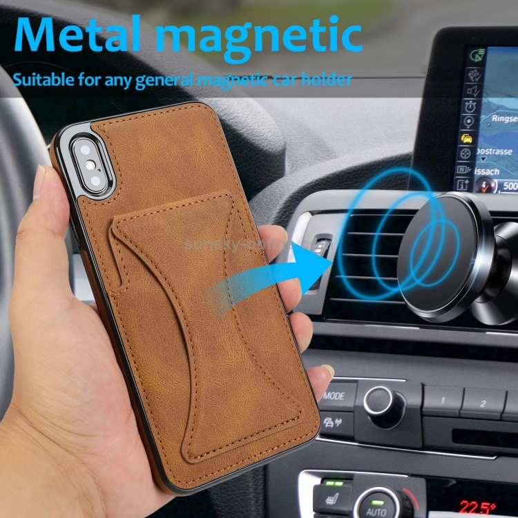 Funda Protectora para iPhone X / Xs Ultrafina a Prueba de Golpes con Soporte y Función Magnética de Metal (Marrón)