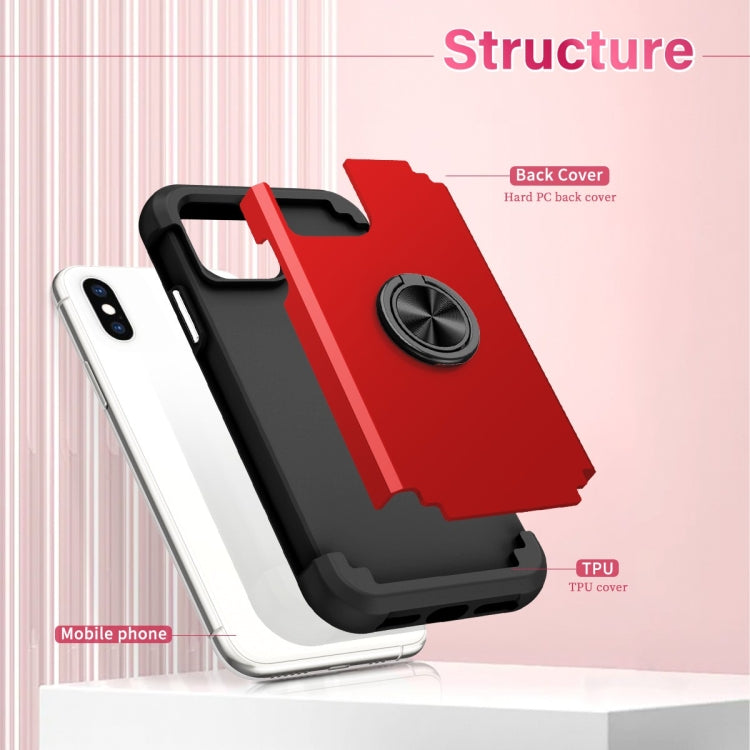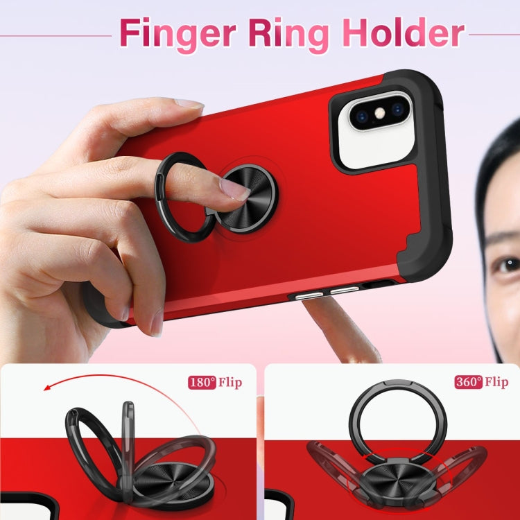 Funda para Teléfono L2 para iPhone X Xs con Soporte de Anillo Giratorio Magnética (Rojo)