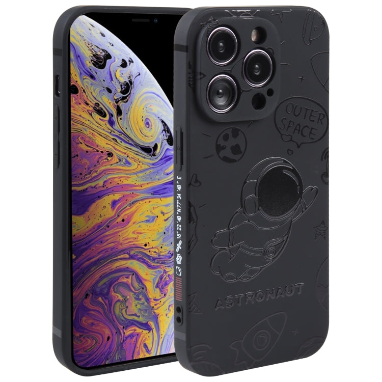 Funda de teléfono para iPhone X Xs de silicona con patrón de Astronauta Volador de borde recto (Negro)
