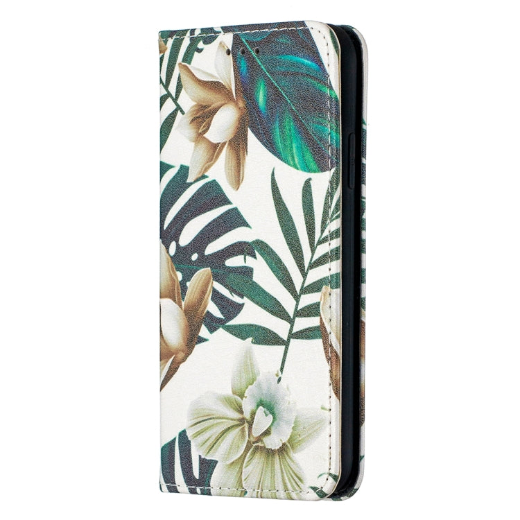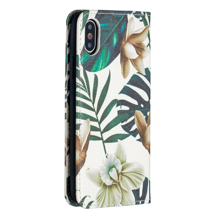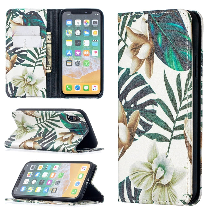 Estuche de Cuero de Pu para iPhone X Xs con Tapa Horizontal Magnética Soporte y Ranuras para Tarjetas (Hojas Rojas)