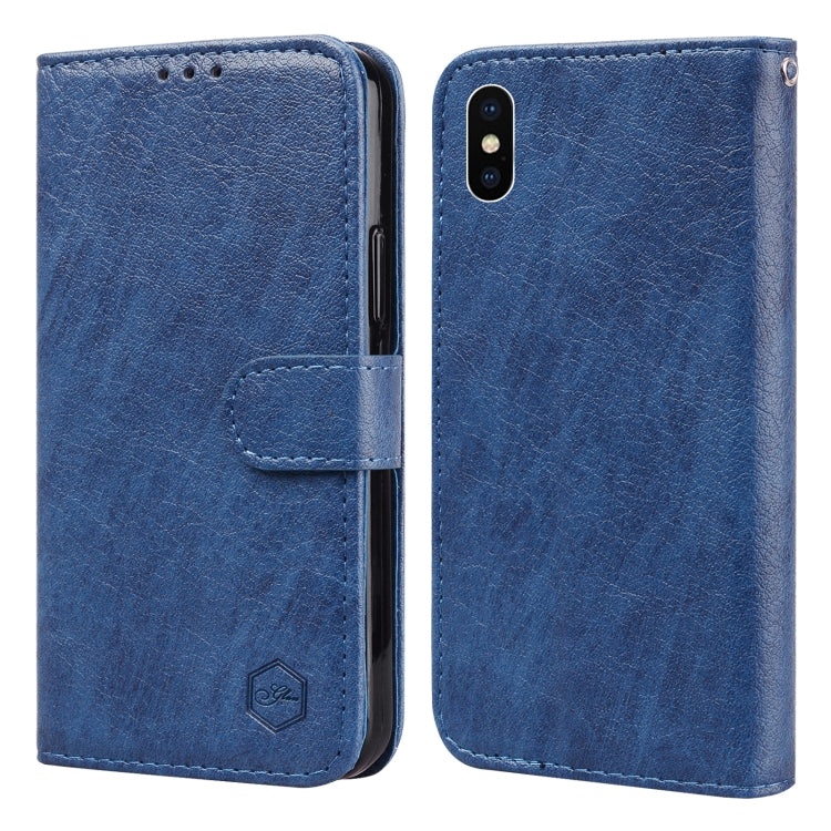 Funda para Teléfono iPhone X Xs Sensación Piel Textura Cuero Aceitoso Pu + TPU (Azul Oscuro)