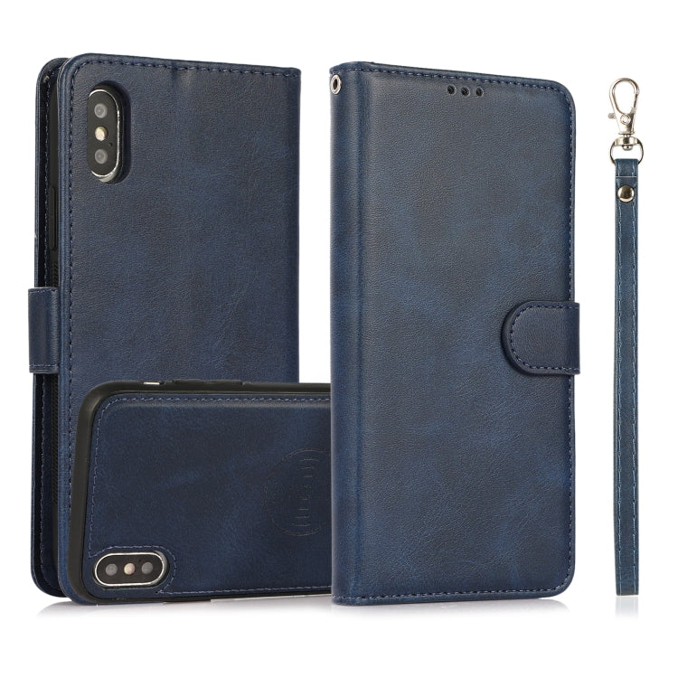 Funda para iPhone X Xs Cuero Textura de Becerro 2 En 1 Cubierta Trasera Magnética Desmontable con Tapa Horizontal Soporte Ranuras Tarjetas Billetera (Azul)