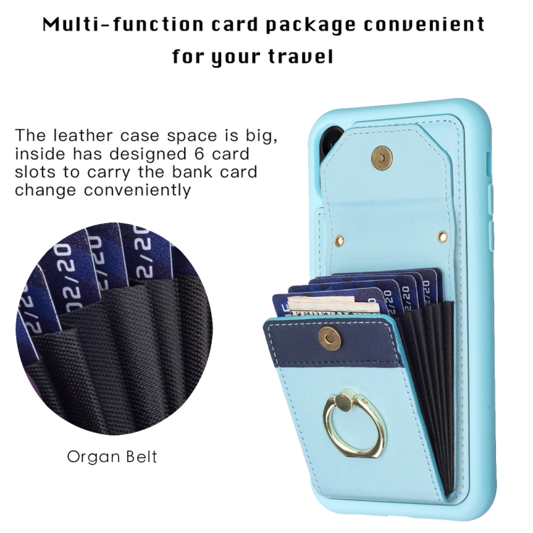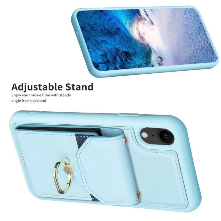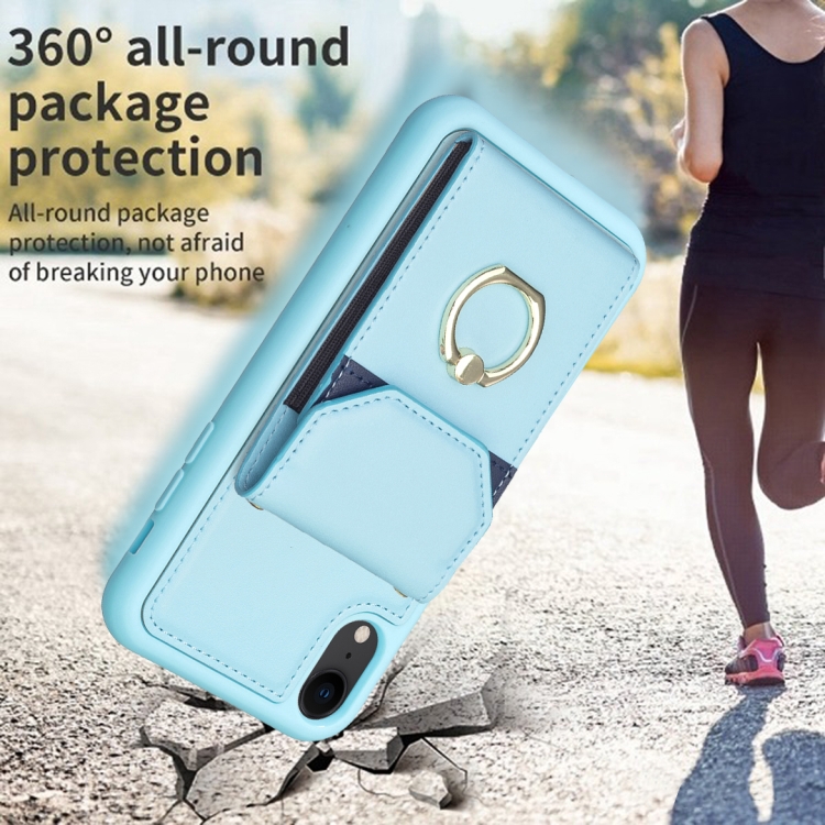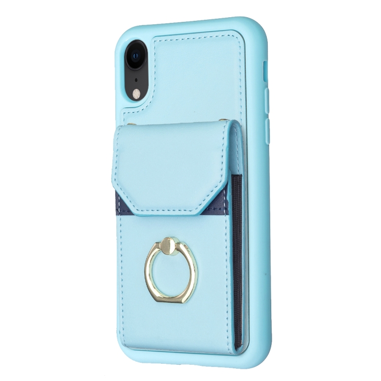 Funda para Teléfono Bf29 iPhone Xr con Soporte para Anillo y Bolsa para Tarjeta (Azul)