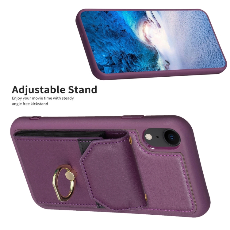 Funda para Teléfono Bf29 para iPhone Xr con Soporte para Anillo y Bolsa para Tarjeta (Luz Oscura)