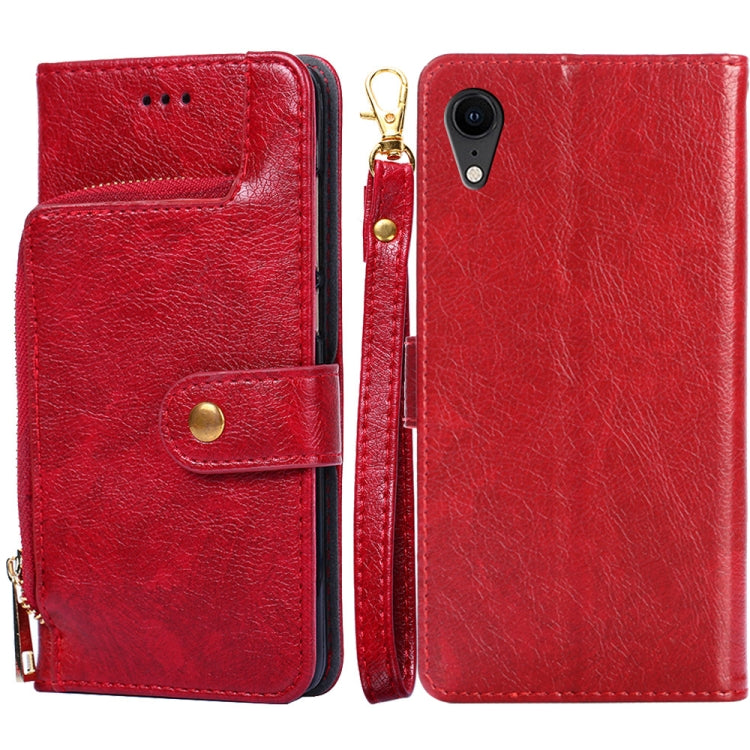 Bolsa con Cremallera Pu + TPU Funda de Cuero con Tapa Horizontal con Soporte para iPhone Xr (Rojo)