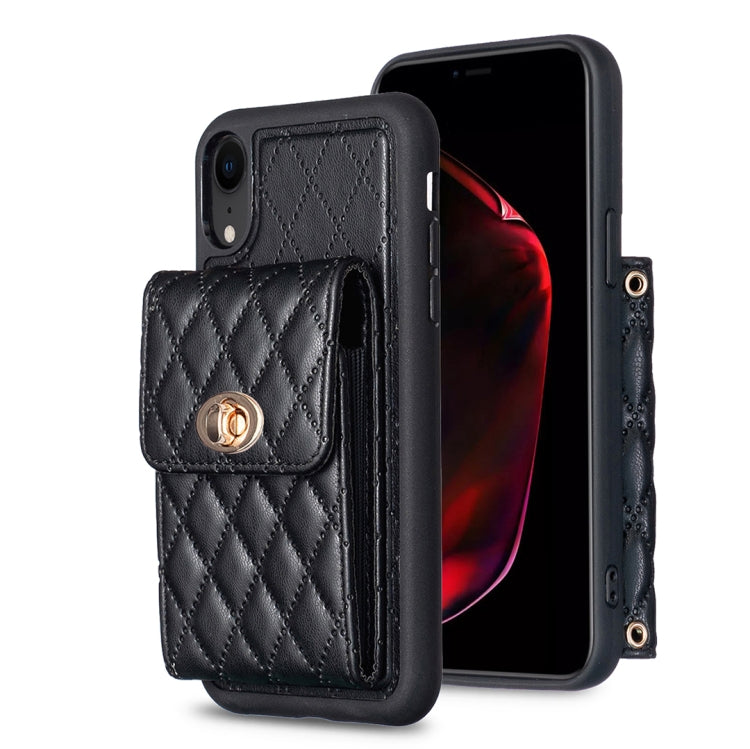 Funda de teléfono iPhone Xr Rómbica billetera cuero hebilla metal vertical (Negro)
