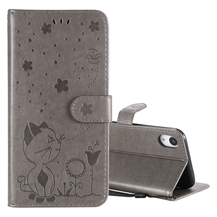 Funda para iPhone Xr Cat Bee Cuero con Tapa Horizontal Soporte y Ranuras para Tarjetas (Gris)