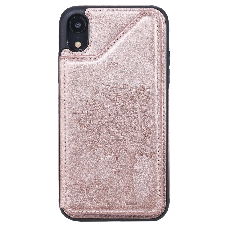 Estuche Protector para iPhone Xr Cat Tree Embossing Pattern a Prueba de Golpes con Ranuras para Tarjetas y Marco de Fotos (Oro Rosa)