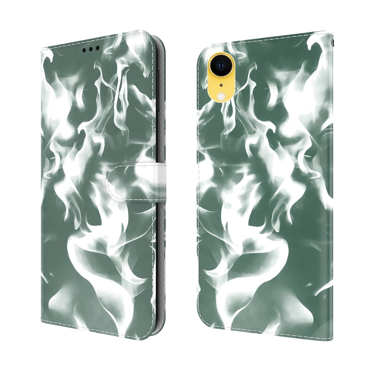 Funda de Cuero para iPhone Xr Cloud Fog Pattern con Tapa Horizontal, Soporte y Ranura para Tarjeta y Billetera (Verde Oscuro)