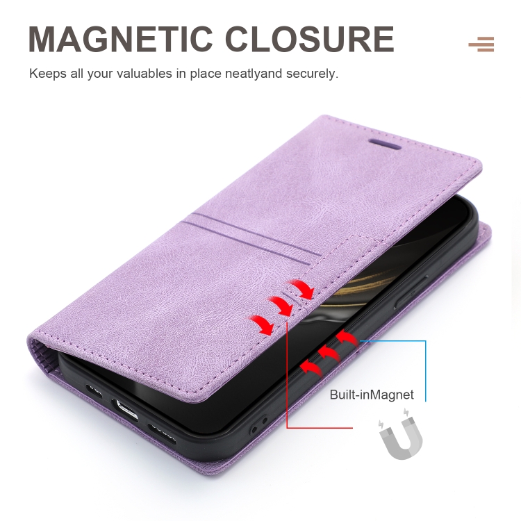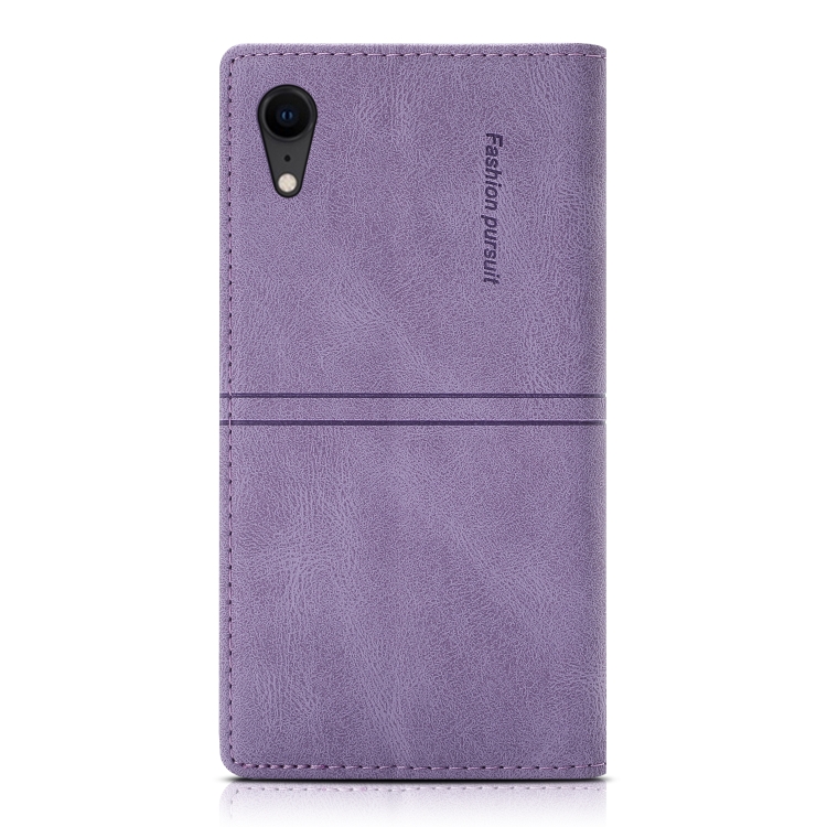 Funda para iPhone Xr Dream Magnetic Suction Cuero con Tapa Horizontal, Soporte, Ranura para Tarjeta y Billetera (Púrpura)