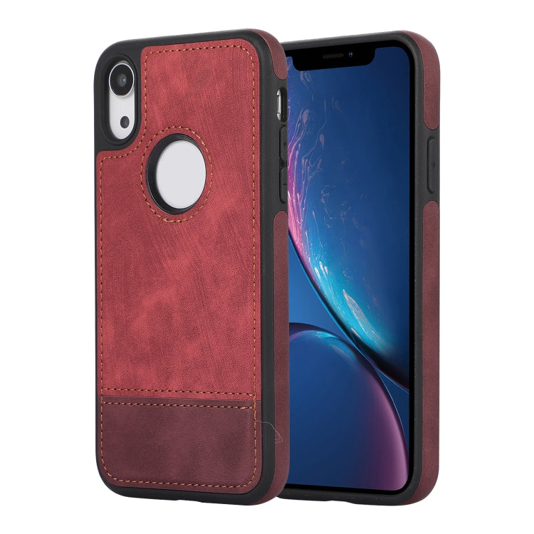 Funda para iPhone Xr Empalme Costura Caja de Teléfono de PU con Recorte Hueco (Rojo)