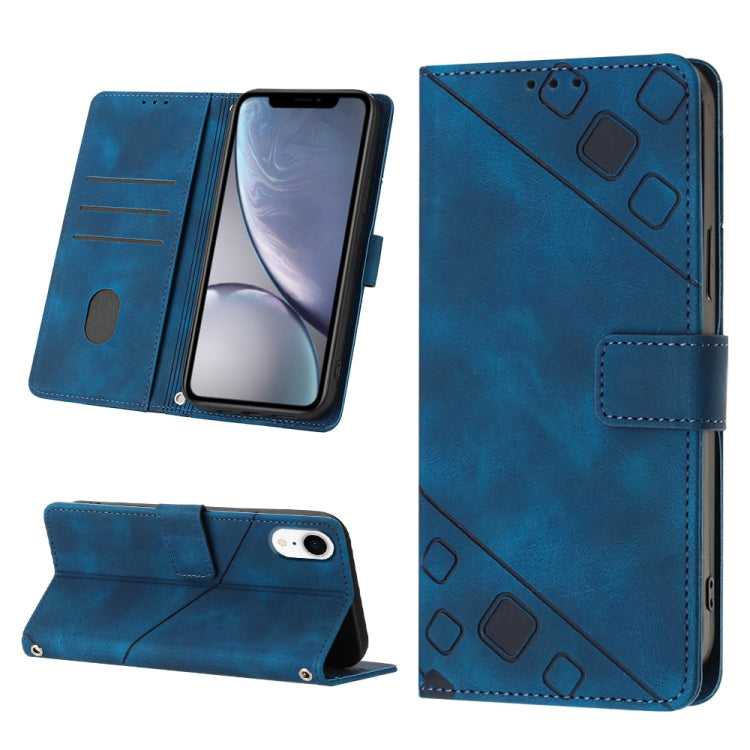 Estuche para Teléfono iPhone Xr Cuero En Relieve Sensación de Piel (Azul)