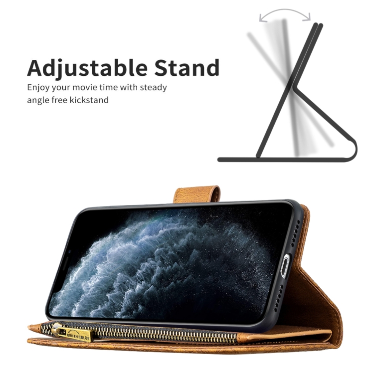 Funda para iPhone Xr Flying Butterfly Patrón de Relieve con Cremallera Caja de Cuero con Soporte y Ranuras para Tarjetas y Billetera (Marrón)