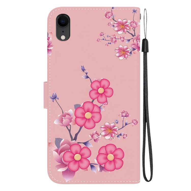 Funda de Cuero para iPhone Xr con Dibujo Coloreado y Textura de Cristal (Flores de Cerezo)
