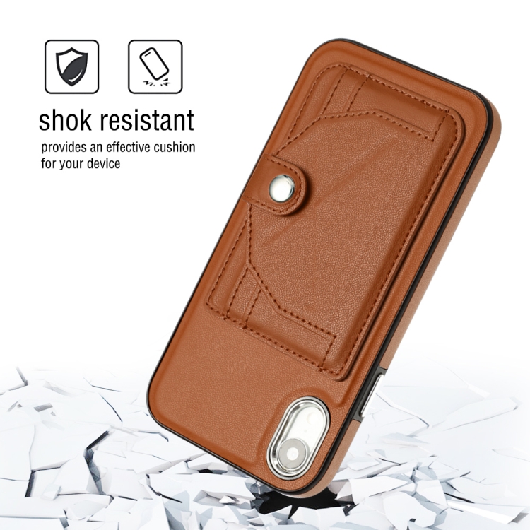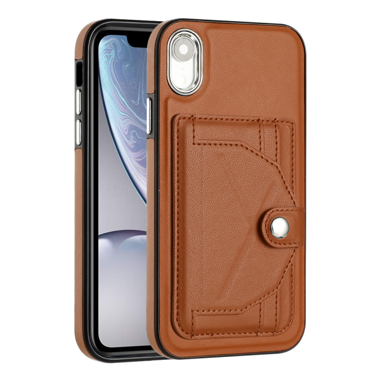 Funda de teléfono iPhone Xr cuero a prueba de golpes con tarjetero (Marrón)