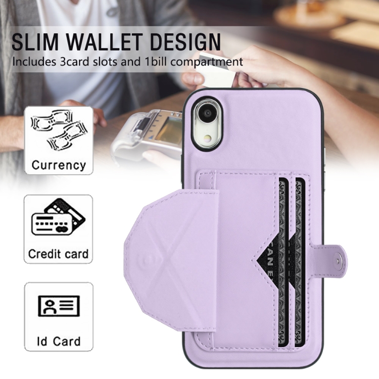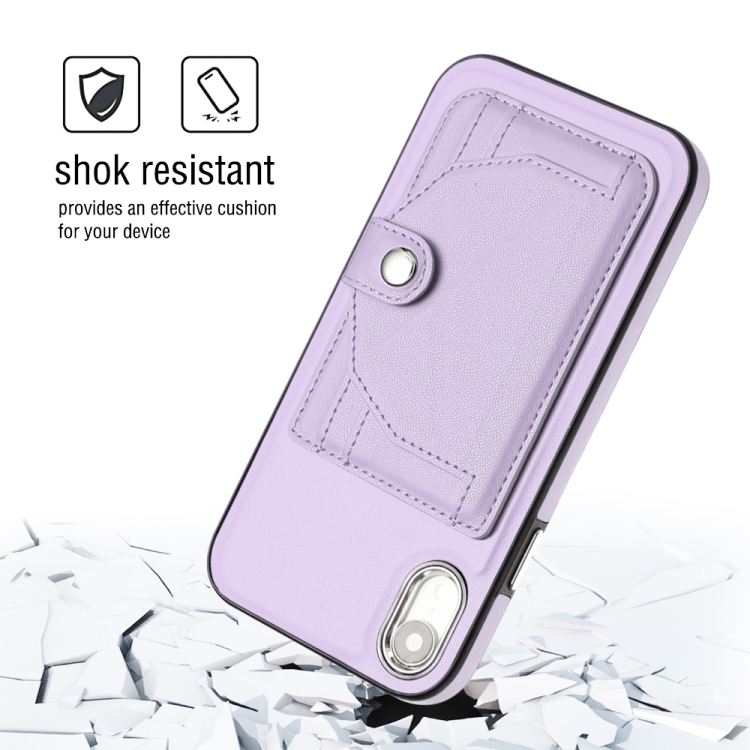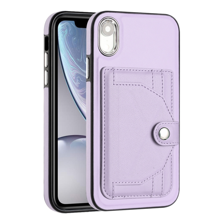 Funda de Teléfono iPhone Xr Cuero a Prueba de Golpes con Tarjetero (Púrpura)