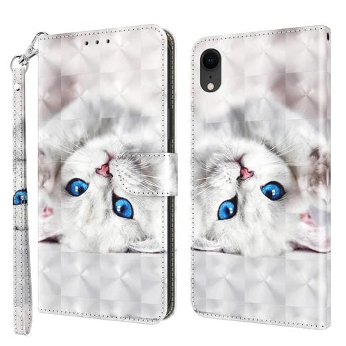 Funda de teléfono iPhone Xr cuero pintado 3D gato blanco reflejo