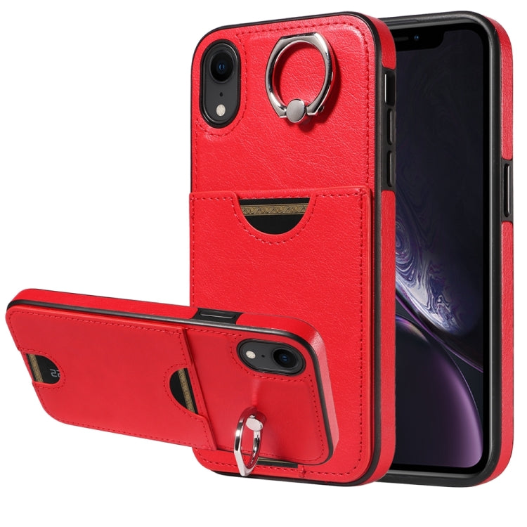 Funda para Teléfono iPhone Xr Soporte Anillo Ranura Tarjeta Textura Pantorrilla (Rojo)