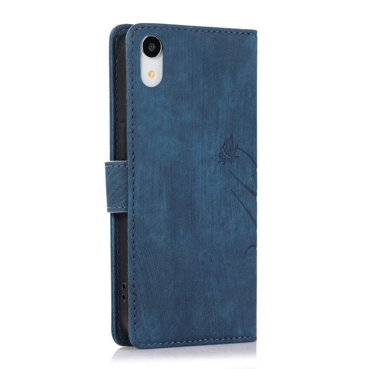 Funda para Teléfono iPhone Xr Cuero Relieve Mariposa Orquídea (Azul)