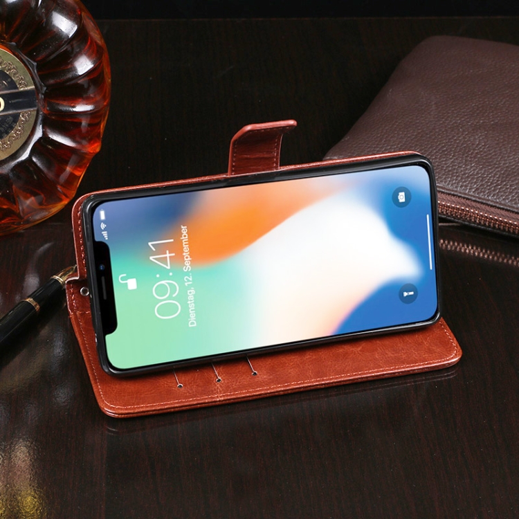 Funda de Cuero Idewei Crazy Horse para iPhone Xr con Tapa Horizontal Soporte Ranuras Tarjetas Billetera (Azul Oscuro)