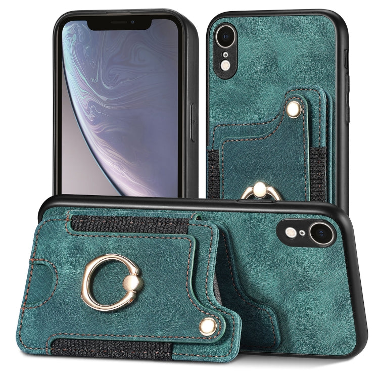 Funda para iPhone Xr Retro Skin-Feel Ring Multi-Card Wallet Phone Case (Verde)