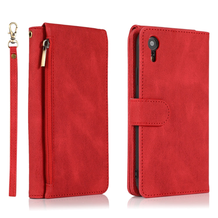 Funda para iPhone Xr Skin-Feel Crazy Horse Estuche de Cuero con Tapa Horizontal y Soporte (Rojo)