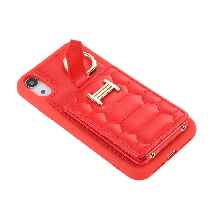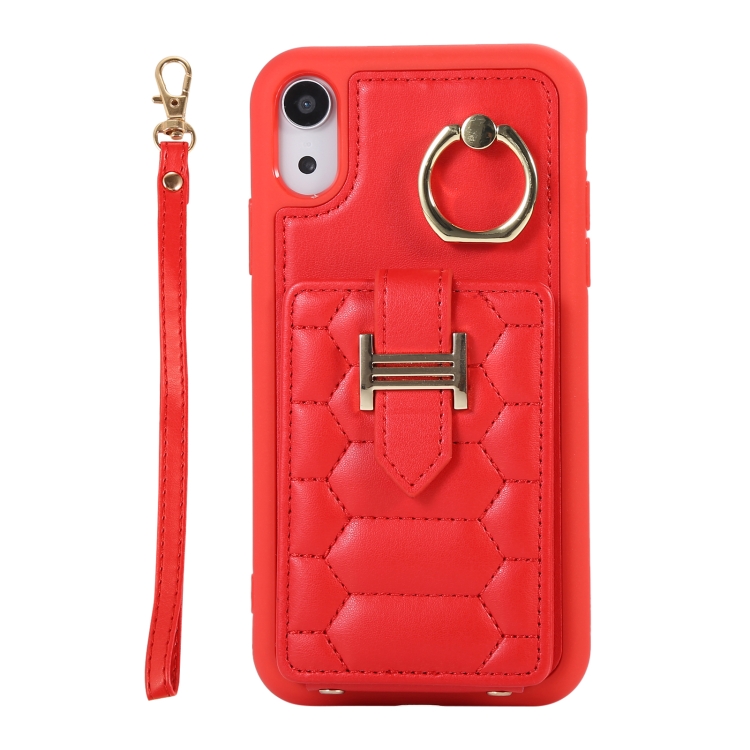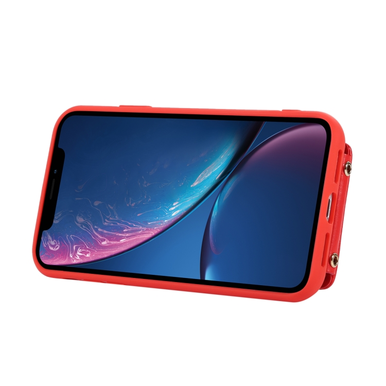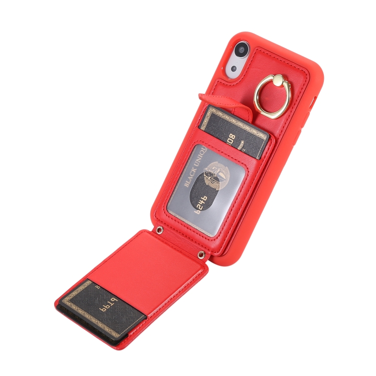 Funda para iPhone Xr Vertical Card Bag Ring Holder con Doble Cordón (Rojo)