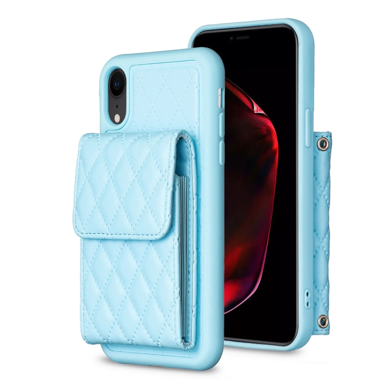 Funda para iPhone Xr Vertical Wallet Rhombic Leather Phone Case (Azul)