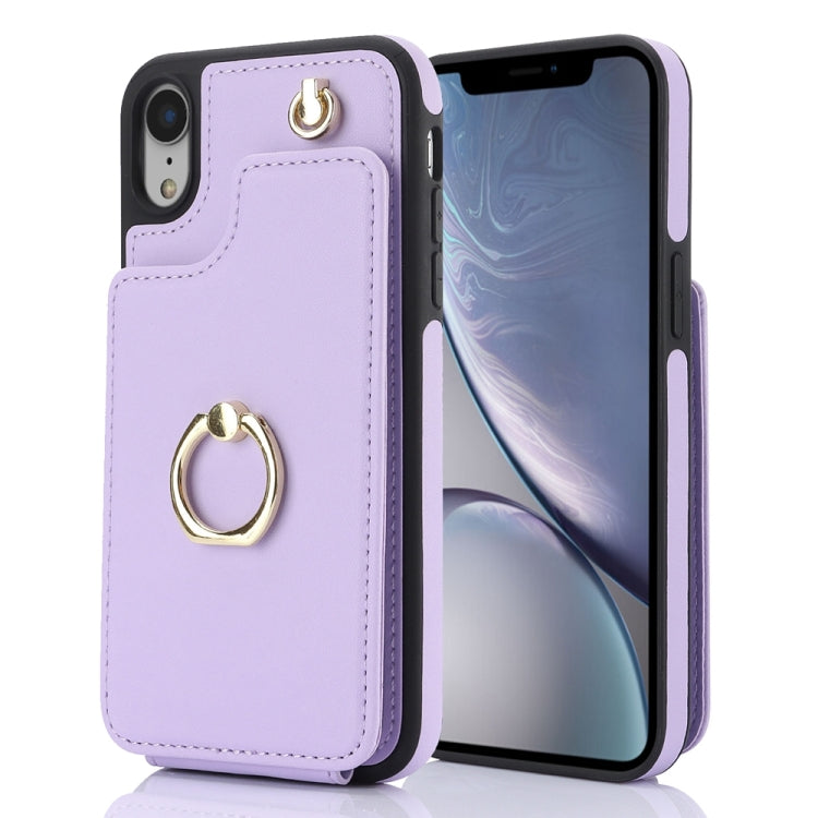 Pour iPhone XR YM005 Skin Feel Card Bag Étui de téléphone avec longue lanière (violet clair)
