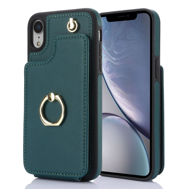Pour iPhone XR YM005 Skin Feel Card Bag Étui de téléphone avec longue lanière (vert)