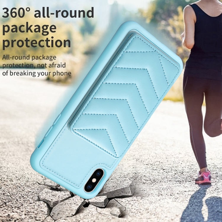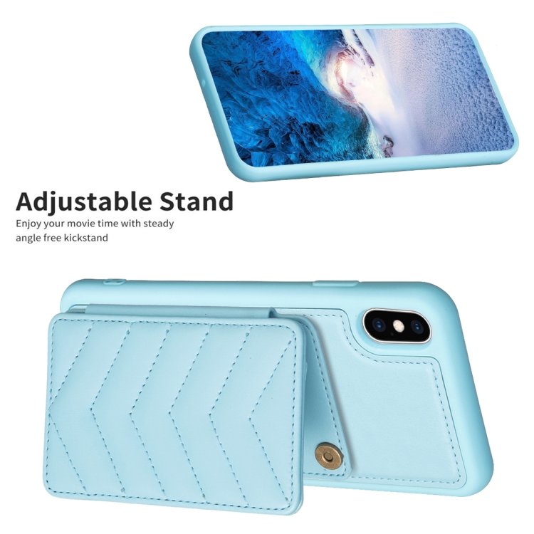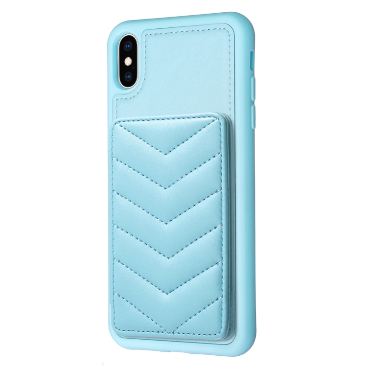 Funda para iPhone Xs Max Bf26 Wave Pattern Card Bag Holder Phone Case (Azul)