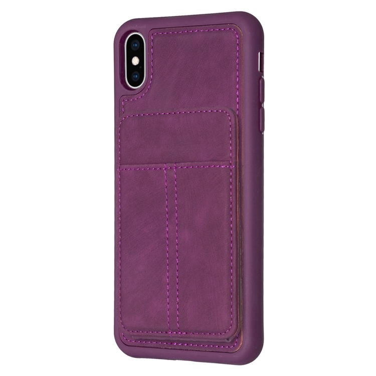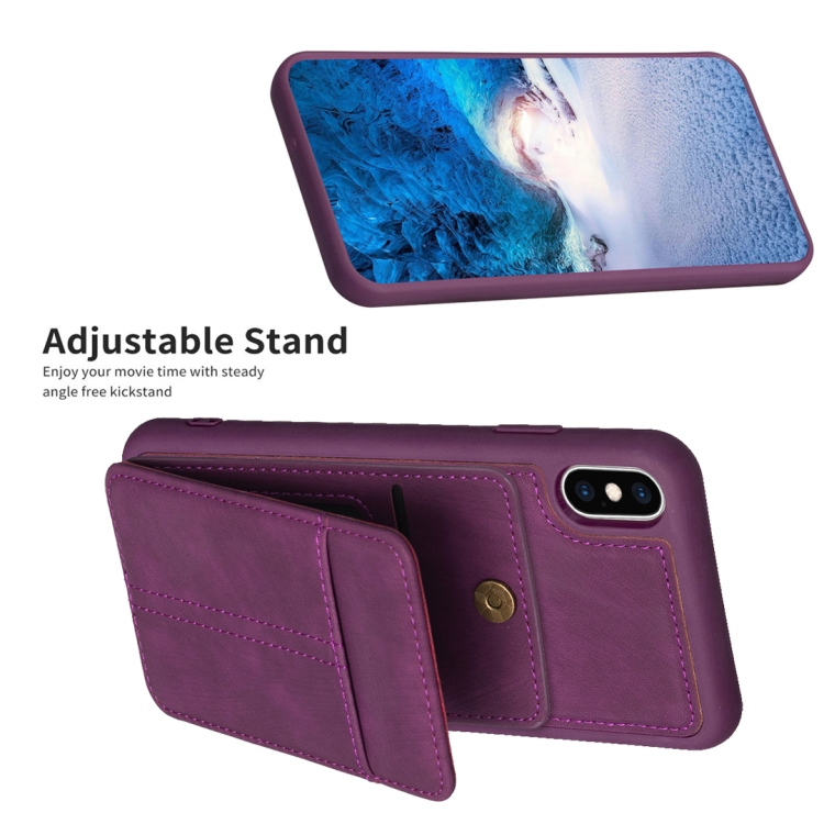 Estuche para Teléfono Bf28 para iPhone Xs Max con Bolsa para Tarjeta Esmerilada y Soporte (Púrpura Oscuro)