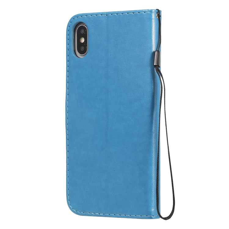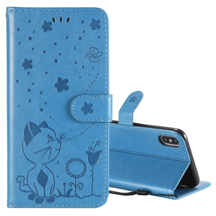 Funda para iPhone Xs Max Cat Bee de Cuero con Tapa Horizontal y Soporte a Prueba de Golpes con Ranuras para Tarjetas y Billetera (Azul)