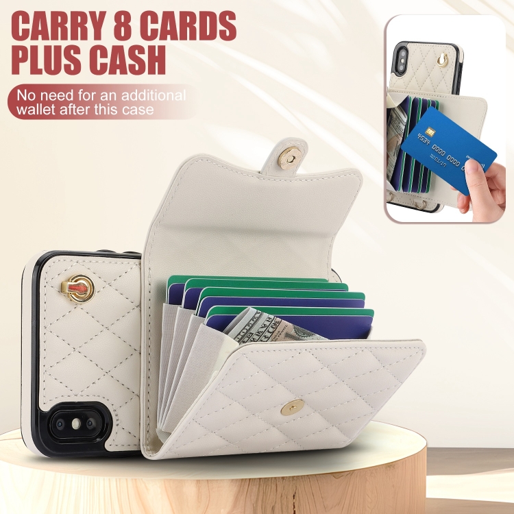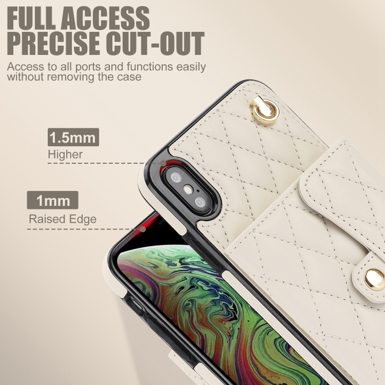 Funda de Cuero para Teléfono iPhone Xs Max Crossbody Rhombic Horizontal (Blanco)