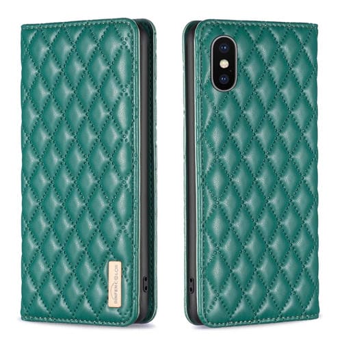 Funda de Teléfono para iPhone Xs Max Diamond Lattice con Tapa de Cuero Magnético (Verde)