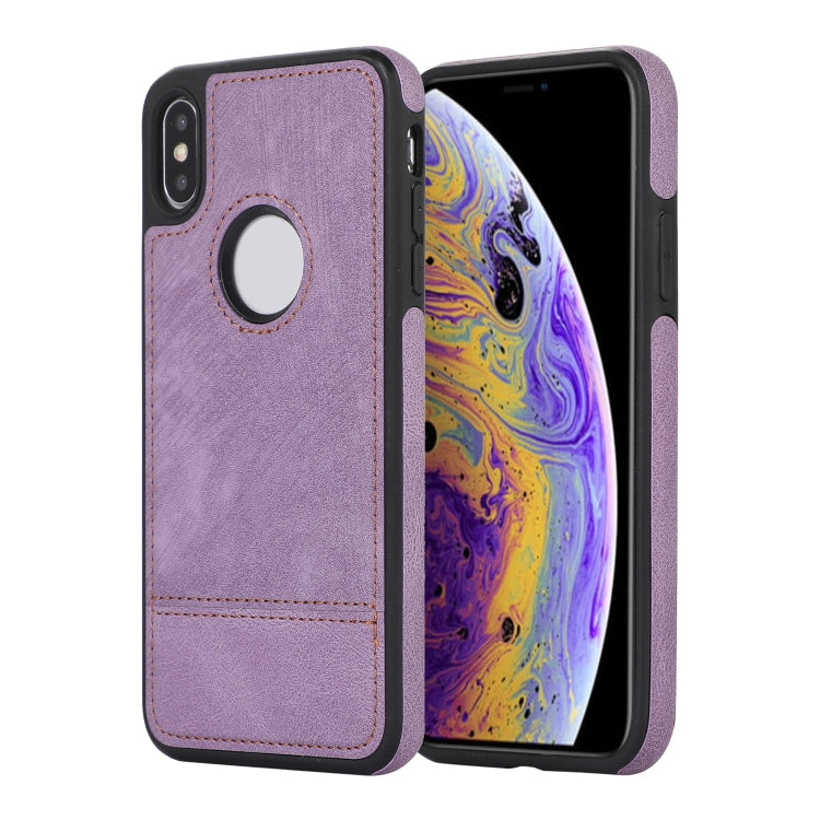 Funda para iPhone Xs Max Empalme Costura Caja de Teléfono de PU con Recorte (Púrpura)