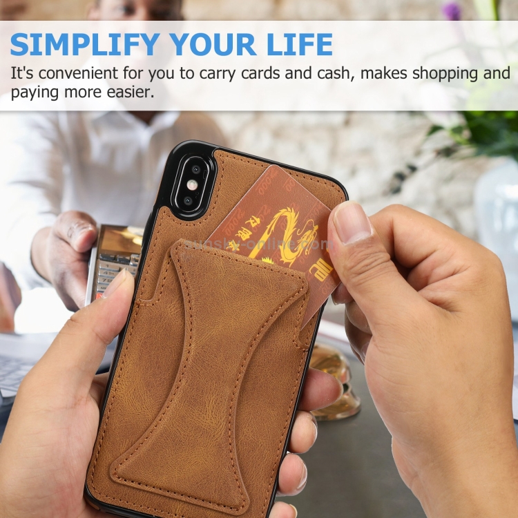 Estuche Protector para iPhone Xs Max Ultrafino a Prueba de Golpes con Soporte y Función Magnética (Marrón)