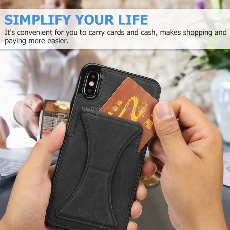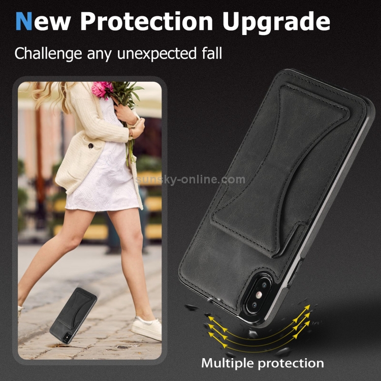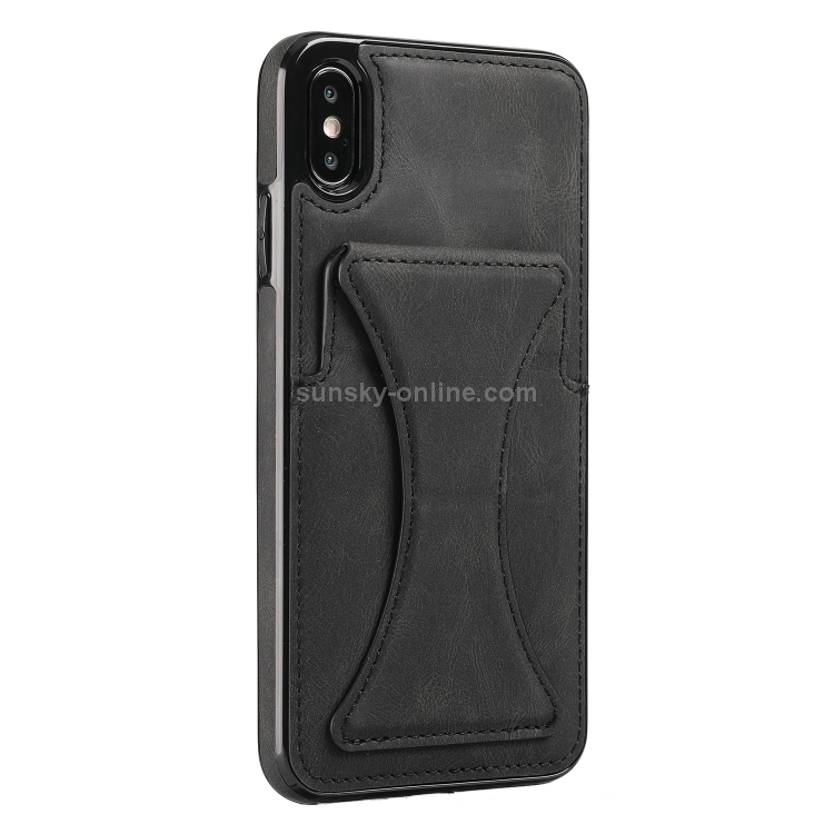 Estuche Protector para iPhone Xs Max Ultrafino Prueba de Golpes con Soporte y Función Magnética de Metal (Negro)