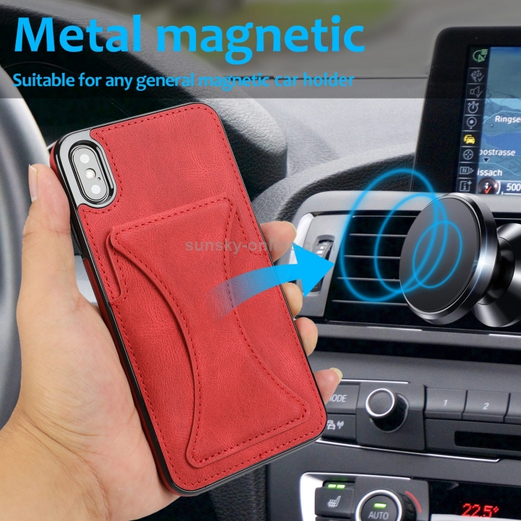 Estuche Protector para iPhone Xs Max a Prueba de Golpes con Soporte y Función Magnética de Metal (Rojo)