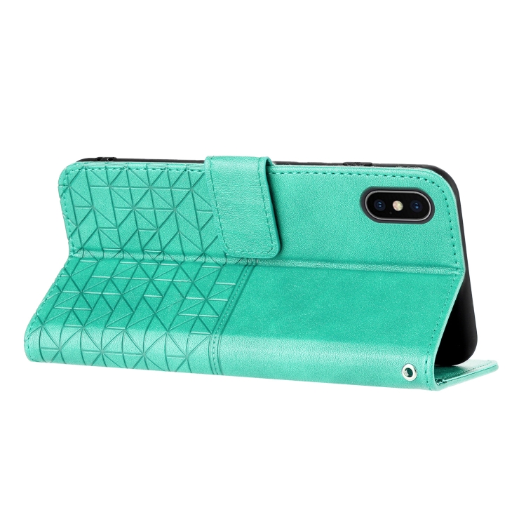 Funda para iPhone Xs Max Cuero Textura Rómbica con Cordón (Verde)